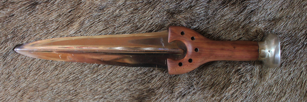 Die dolchklinge ist insgesamt 23,5 cm lang und 6 mm dick-- über dem Mittelgrat 11 mm.