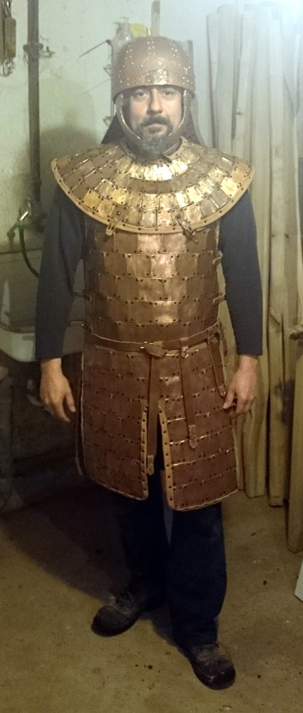 Natürlich ist es richtig, dass Bronze das bessere Material wäre, wir planan auch Schuppen wie sie beim Nackenschutz des Helmes zum Einsatz gekommen sind in Bronze zu gießen, auch möchte ich den ganzen Helm nochmals in Bronze bauen. Als Prunkrüstung ist allerdings gegen Kupfer auch nicht viel was einzuwenden und der Spangenhelm ist konstruktionsbedingt auch in Kupfer sehr stabil.