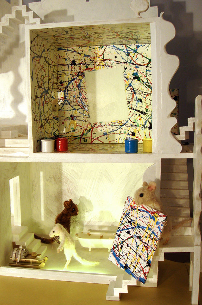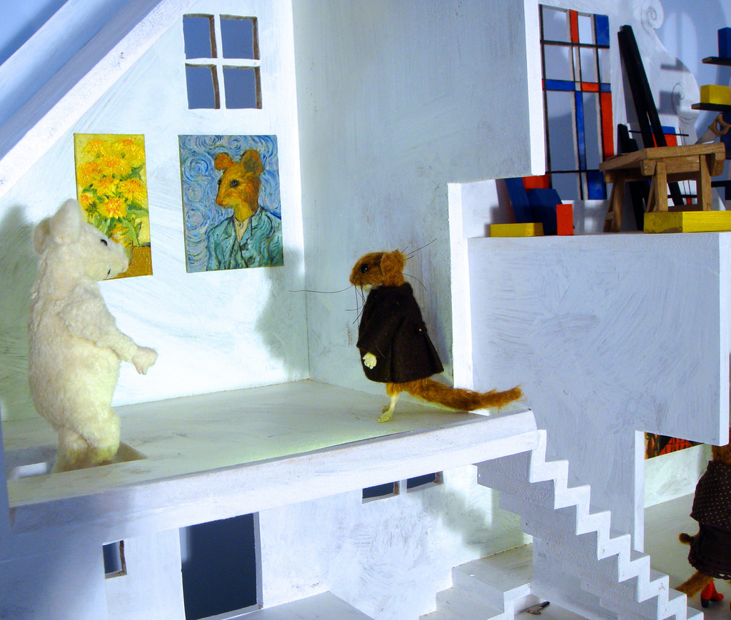 Ja, ca 40, oder so, Mäuse bewohnen seit ein paar Jahren unser Schaufenster. Die Mäuse näht meine Frau, ich baue nur gelegentlich mal ein paar Requisiten.