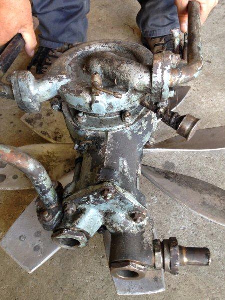 Sieht mir aus, wie eine Wasserpumpe von einem LKW-Motor mit Hydraulikantrieb, die den Luefter gleich mit drauf hat.