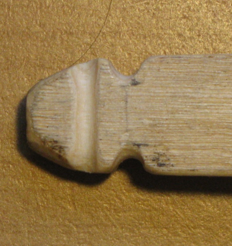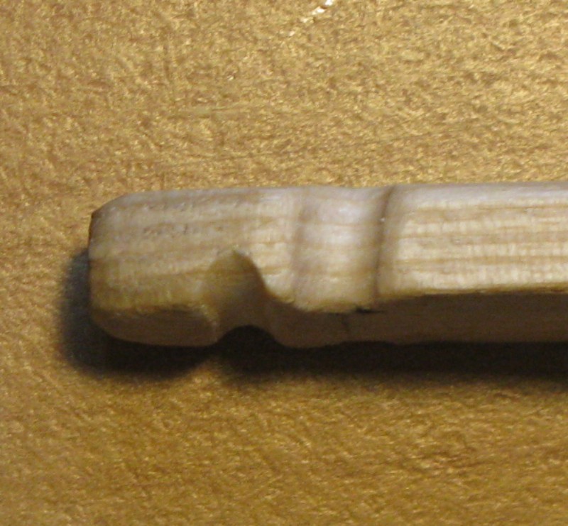 Momentan hab ich den Bogen nicht zu Hand, aber ich werd die Kerben noch vertiefen und abrunden.