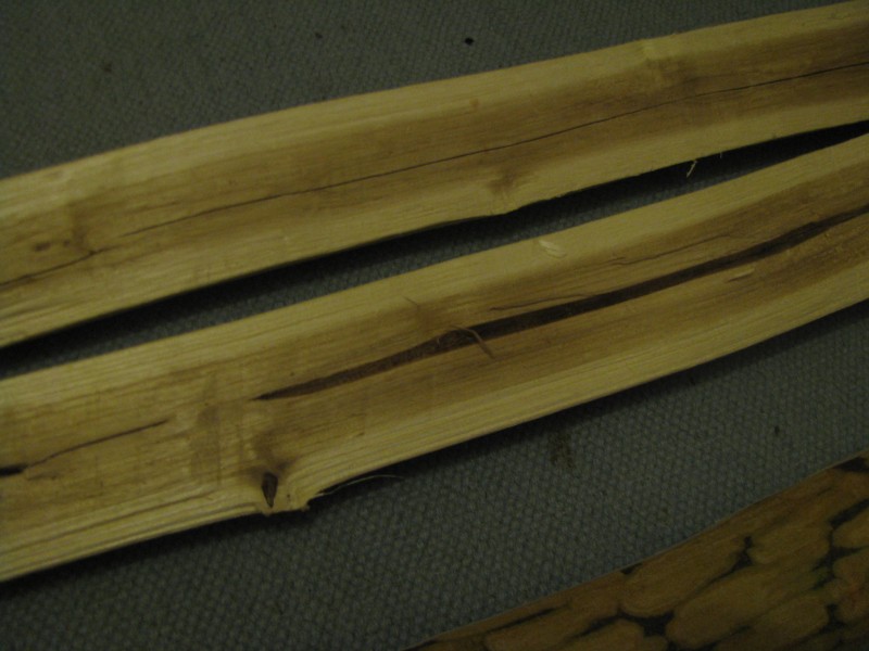 Zum Thema Trocknungszeit: Wenn ein Stave in wenigen Tagen trocken ist, bedeutet das für das Holz oft eine Rosskur. Man kann zwar als Extremfall einen Stave schon mal im Auto im Sommer schnelltrocknen, aber schonend ist so eine Vorgehensweise sicher nicht. Ich habe ein kleines Freiluftlager. Von dort aus kommt der Stave in den Keller. Wenn ich glaube, dass er so weit ist (Gewicht messen und notieren), vermurkse ich ihn, indem ich versuche, einen Bogen daraus zu bauen.
