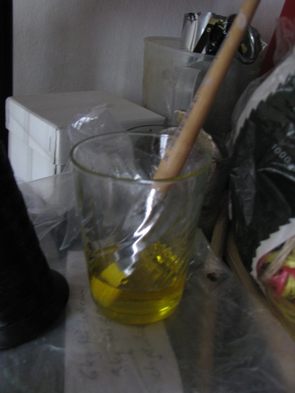 das Foto vom übriggebliebenen Leinöl gemacht. (Man braucht wirklich extrem wenig)
