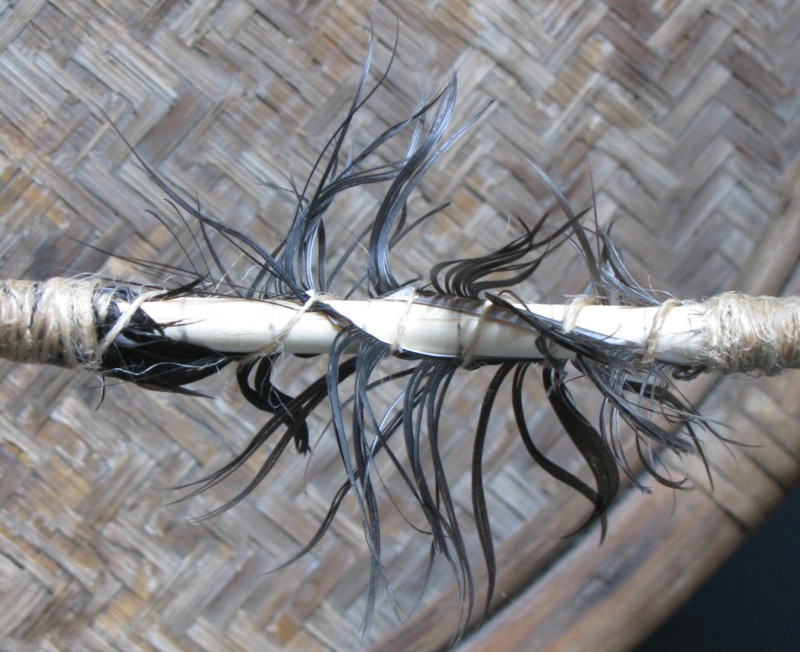 Zum Schluss noch eine Wicklung um die Federn herum, dass sie besser halten und der Kleister fürs Wicklungsende