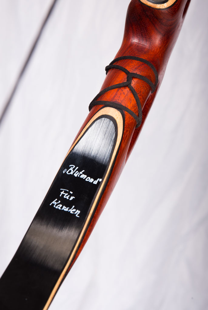 Der Kleine ist ne leicht veränderte Version miner Meia-Lua-Bögen und geht dann auch bald per Post in den Ruhrpott zu nem Hallenschützen. Der Bogen sollte 40 Pfund bei nem 27 er Auszug haben aber trotzdem auch mit 29 Zoll geschossen werden können.