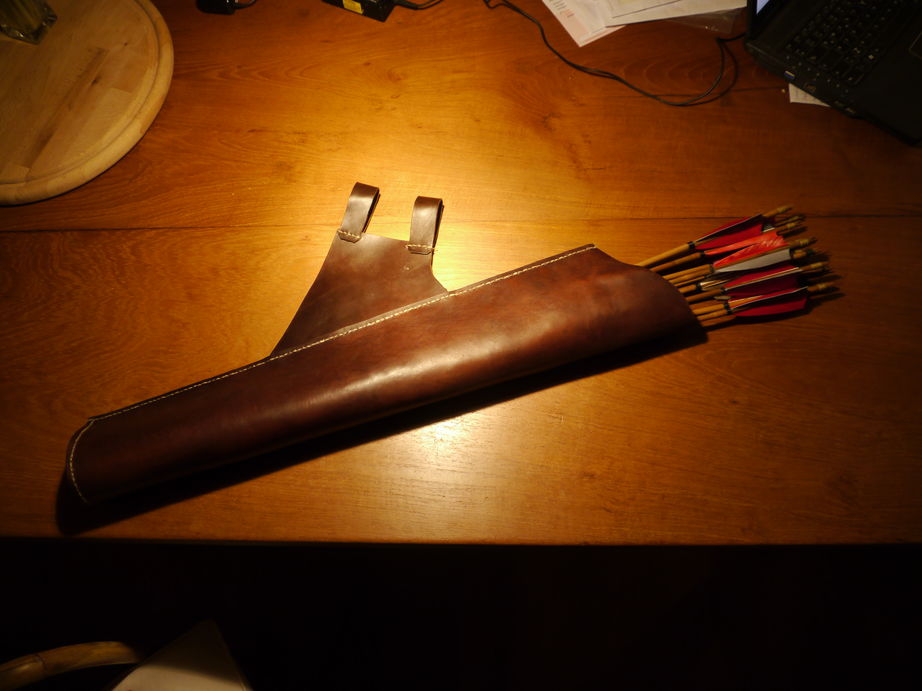 Schöne Arbeit, der Köcher sollte aber mit der Öffnung zum Kopf des Pferdes hin und am Reiter (Gürtel), denn am Pferd befestigt werden, da er ansonsten beim Reiten am Unterschenkel stört (was Benzi wohl andeuten wollte).