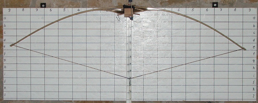 Hake, der Bogen liegt nicht mit der geometrischen Mitte auf wegen der Griffmulde, also etwas nach lings versetzt, sieht man an den senkrechten Linien. Aber du hast richtig gesehen, der linke Wurfarm (auch der untere) ist etwas steifer. Der Sehnenabstand zum Fadeout ist am oberen 6mm höher da das Shelf 3,5 cm von der Mitte nach oben gesetzt ist. Das schwankt bei diesen Bögen zwischen 1 und 2 Zoll, je höher das Shelf je größer der Tillerunterschied.