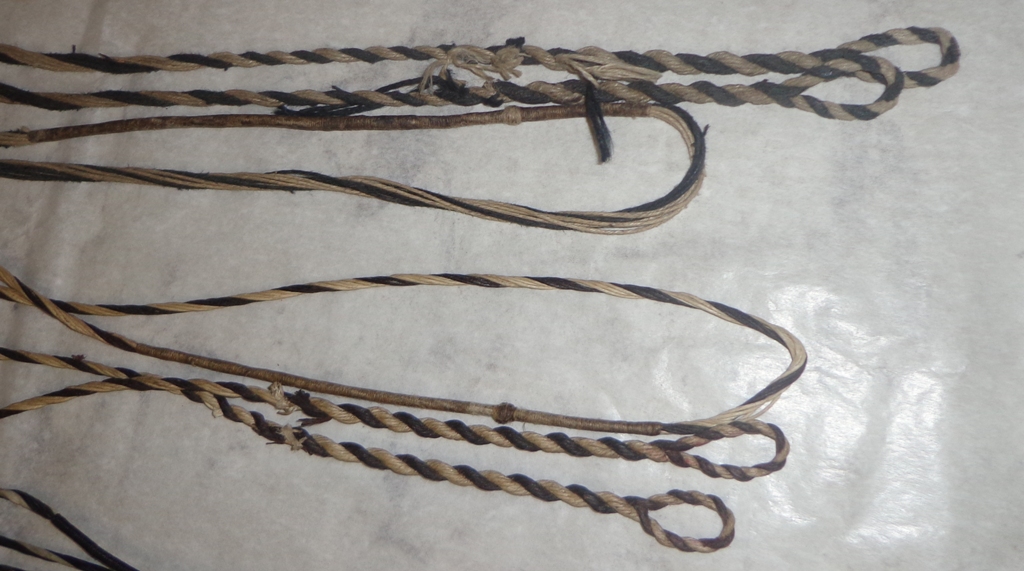 Soda, hab gerade mal das Zuggewicht des ebay-Garnes gemessen. 2 Stränge rissen wiederholt bei 37 bis 42 # Belastung, das heißt ein Strang hat ~20#. Verzwirnen änderte daran nichts. Das heißt für mich, dass das Garn halbwegs gut ist. Hab dann auch noch 2 Sehnen mit je 10 Strang daraus gedreht (10*20=200# Bruchkraft) Wollte ja nur eine drehen, aber die wurde zu kurz, weil ich Dödel mich gleich mal übel mit dem Sehnenbrett verrechnet habe