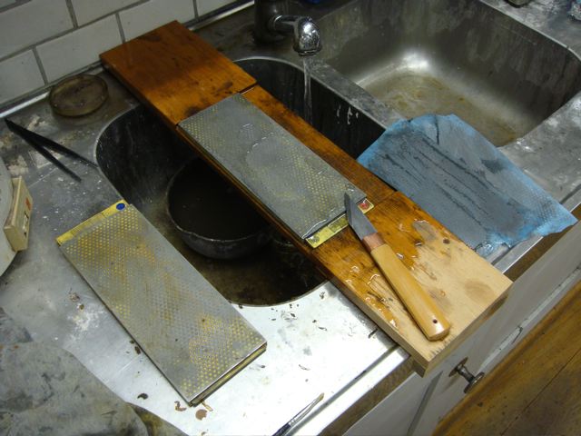 Ich habe auf fertig, ich muss aber anmerken, dass ich das ohne Shokunins Hilfe nicht so geschafft hätte! Es waren viele Arbeitsweisen und Handgriffe, die ich in dieser Form noch nie gemacht hatte - danke dir vielmals! Habe viel gelernt. Daher hat dieses Messer auch einige Mängel und Fehler, die ich hoffentlich kein zweites Mal mache.