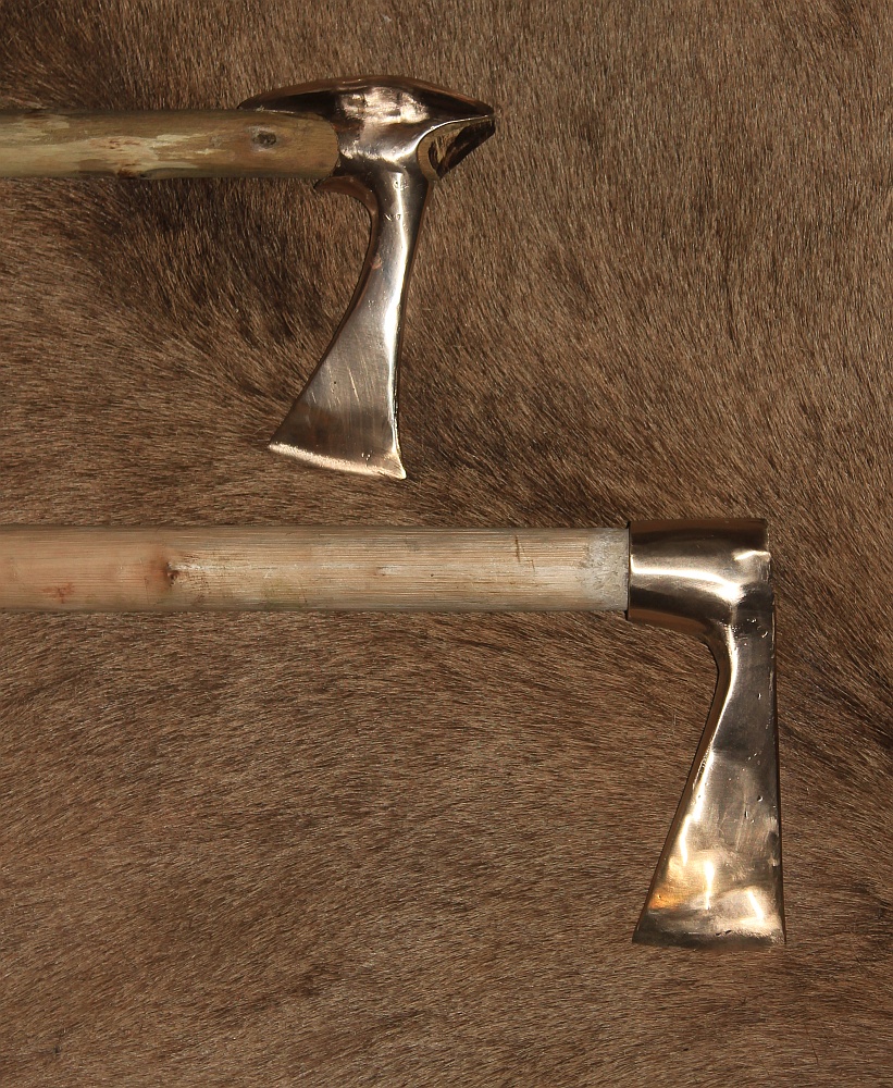 Das beste Beispiel ist ist die rechte Axt welche eigentlich aus Kupfer sein sollte und den späteren Randleisten- und Tüllenbeilen.Warscheinlich ist diese Kupferaxt viel aufwändiger herzustellen als die Späteren Äxte, die damit zur Massenware wurden.