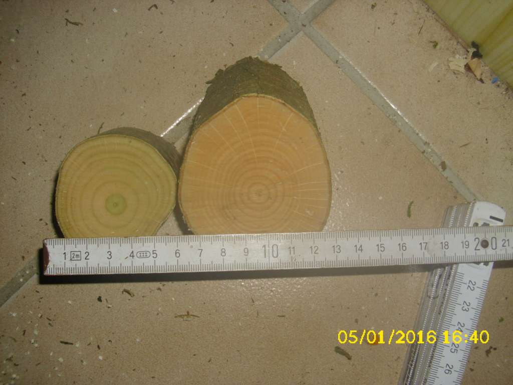 - Hasel : heute 1101g, keine weitere Holzentfernung, liegt noch im Kellerabgang (jetzt aber 30cm unter der Decke), mein Favorit.