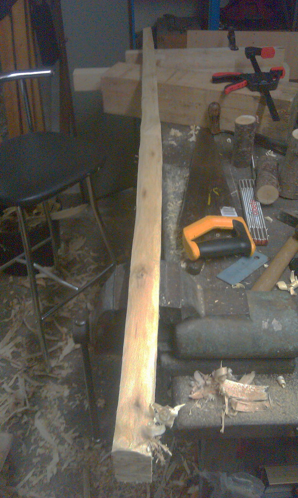 Jetzt hab ich mal Urlaub und widme mich meinem Robinienstämmchen welches, neben dem Haselknüppel, langsam in Form gebracht wird.