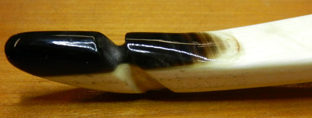 Nocken aus Bueffelhorn, Griff aus pflanzengegerbtem Leder (aufgeschrumpft)