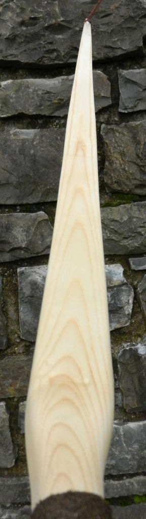 Breite: 38mm auf 40cm Länge danach gleichmässig verjüngend auf 10mm an den Nockkerben