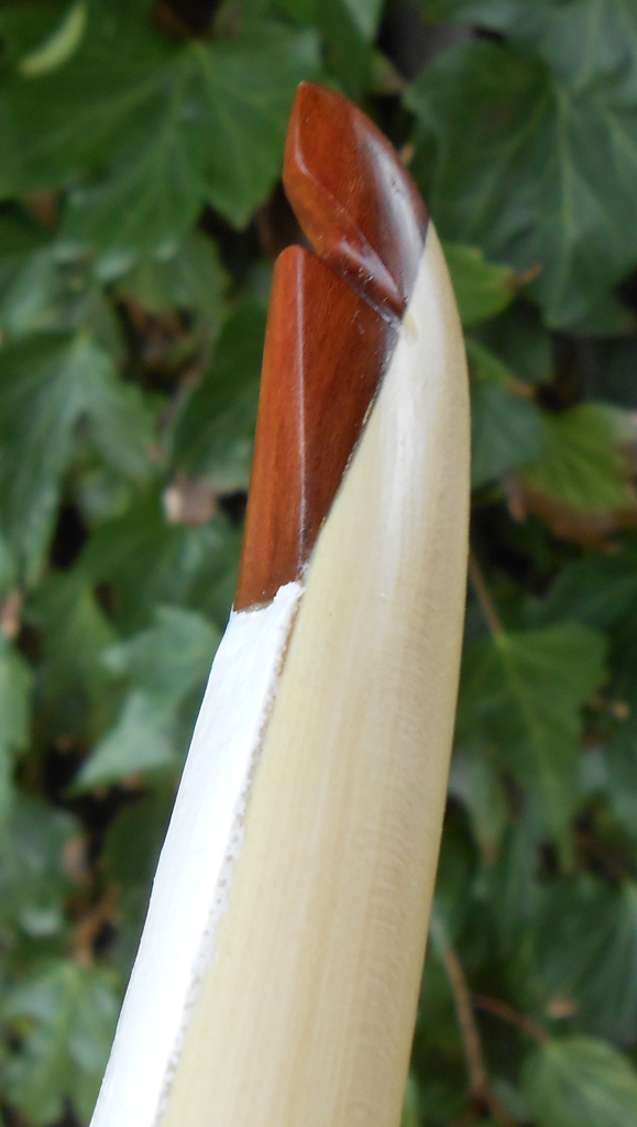 unten Selfnock / Bogenbauerknoten, oben Nock mit 3mm Horninlay
