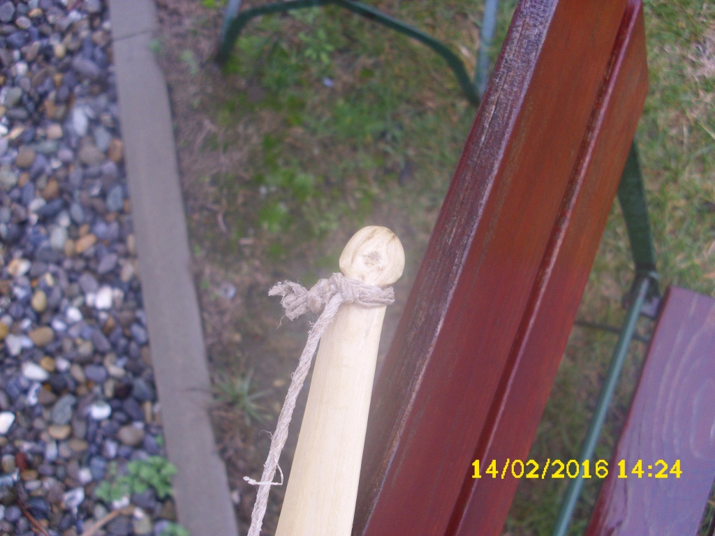 Die Sehne war ursprünglich aus 12 Strang Dacron B50, wurde aber durch Hanf ersetzt,da die Kunstfasersehne m.M. bei solchen Bögen aufgrund ihrer Elastizität einfach unpassend ist.