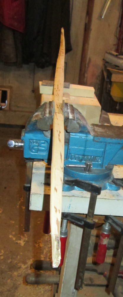 Erste Biegeversuche mit dem Komposit sind gut verlaufen der Bogen scheint auch ohne großes Tillern schon ganz gut im Gleichgewicht.