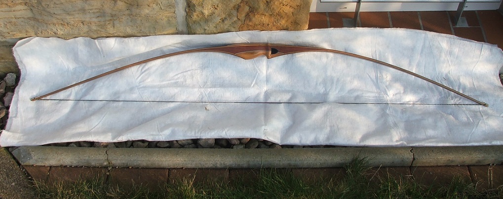 Ist seid mitte Januar fertig und nun auch mit ca. 300 Pfeilen eingeschossen. Langbogen im Deflex- Reflex Design aus meiner 2. Form ( wie Nr. 5 ). Das Riegelfurnier gibt im Licht ein tolles Farbspiel von Dunkel bis Gold leuchtend. Der Auszug ist schön Gleichmäßig und für 40 # fühlt er sich ordentlich schnell an ( nicht gemessen ).