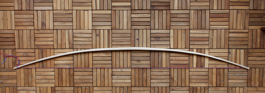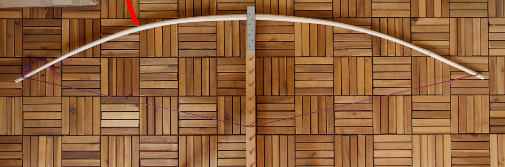 Mein grober Orientierungsfaden war die Anleitung für den Bau eines Eibe-ELB '6footer' von Blacky. Dabei hat sich zum einen herausgestellt, dass Hickory die Bezeichnung Hartholz durchaus verdient hat (Bearbeitung mit Ziehmesser und Schweifhobel) und dass mit Hickory bei den Maßen von Blackys Eibenbogen ein Knüppel entsteht, welcher einen Hirsch vielleicht erschlagen aber sicher nicht erschießen kann (zumindest nicht mit der bei mir vorhandenen Schultermuskulatur). Somit wurde der Bogen weiter ausgedünnt und hat jetzt einen eher flachen Querschnitt bekommen. Mittlerweile sitze ich eine geraume Weile am Tillern und hier würde ich jetzt die Fachleute des Forums um kleine Hilfen bitten!