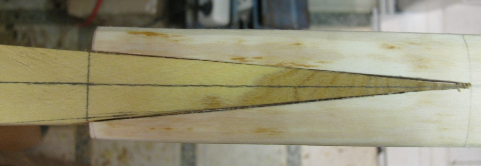 Das ganze sah dann so aus: Dann habe ich die Spleiss-Verbindungen für den 3-teiligen Kern gesägt.