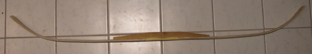 sieht schonmal mehr nach Bogen aus. Allerdings sind die Wurfarme im Kasan-bereich noch leicht verdreht, was ich vor dem Verleimen noch mit der HLP zu korrigieren gedenke. Aber es fluchtete schon mal recht zufriedenstellend.