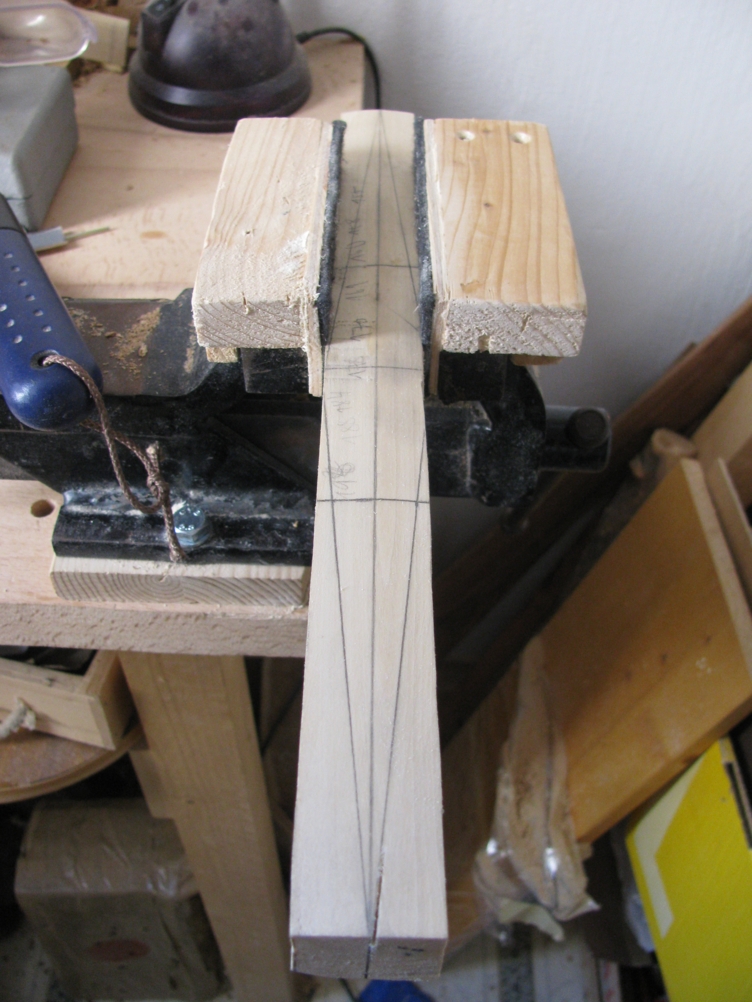 Für die Verleimung von Holzrahmen und Hornstreifen mittels Tendschek muss der Beitentaper nahezu perfekt stimmen wenn ich mich nicht täusche. Auf den Holzrahmen habe ich jetzt die Mittellinie festgelegt. Nächster Arbeitsschritt wäre jetzt also das Herausarbeiten des Breitentapers nicht wahr?! Rückmeldungen erwünscht!