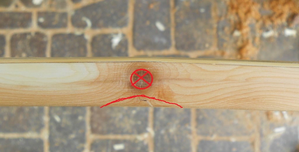 Hi, das ist ja schade..der Bogen sieht sehr schön aus. Ich habe solche Reparraturen nie gemacht, aber ein Paar gesehen. Ich glaube dass da auch etwas gutes ist...der Ast ist nicht durch oder? So sieht aus dem Bild aus..also er ist nur da an der kante, und das ist mal gut...es gibt da noch ein bisschen material, welches stark ist. Ich würde nicht auf so eine lange Stelle die reparratur verbreiten, sondern nur da wo der Ast ist.