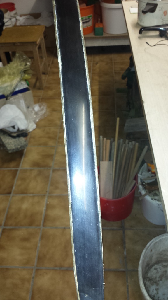 Wie man auf dem Bild sieht hab ich die Wurfarmenden noch leicht schmäler gemacht ab dem Bereich wo der Holzkern wieder dicker wird jedoch noch Horn auf dem Bauch vorhanden ist