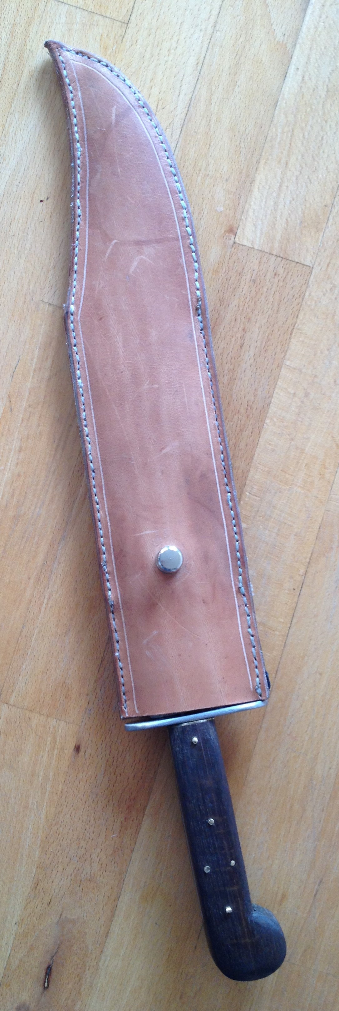 Eine Scheide für das Bowie ist relativ einfach: Man nehme vegetabil gegerbtes Sattlerleder zirka 3 mm stark.
