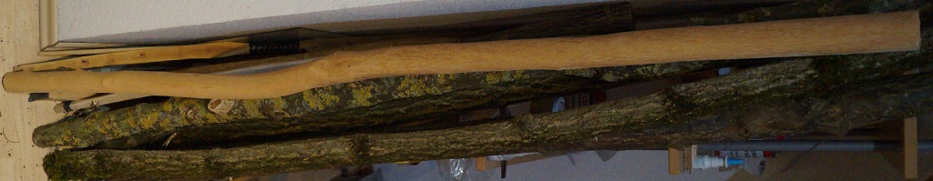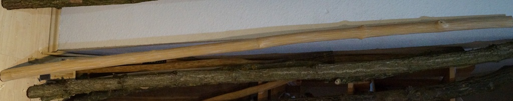 Ich habe am Griff jeweils 1,5-2 cm eingesägt damit er dort reißt falls er reißen möchte, allerdings glaube ich nicht das er überhaupt reißen möchte da ich eine rundscheibe (Stammabschnitt) von beiden Staves auf der Heizung getrocknet habe und die keinerlei Risse davon getragen hat.
