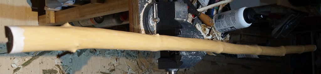 So ich habe gestern und heute jeweils einen Holunder aufs Mark gearbeitet und entrindet. Anschließend auf die endgültige Länge plus jeweils 2 cm abgelängt und versiegelt an den Fadeout´s sowie an den enden, den Markkanal habe ich ausgekratzt. Ich habe den Markkanal nur so weit angeschnitten das ich ihn lehr machen konnte damit ich für die weitere Bearbeitung ausreichend Holz habe
