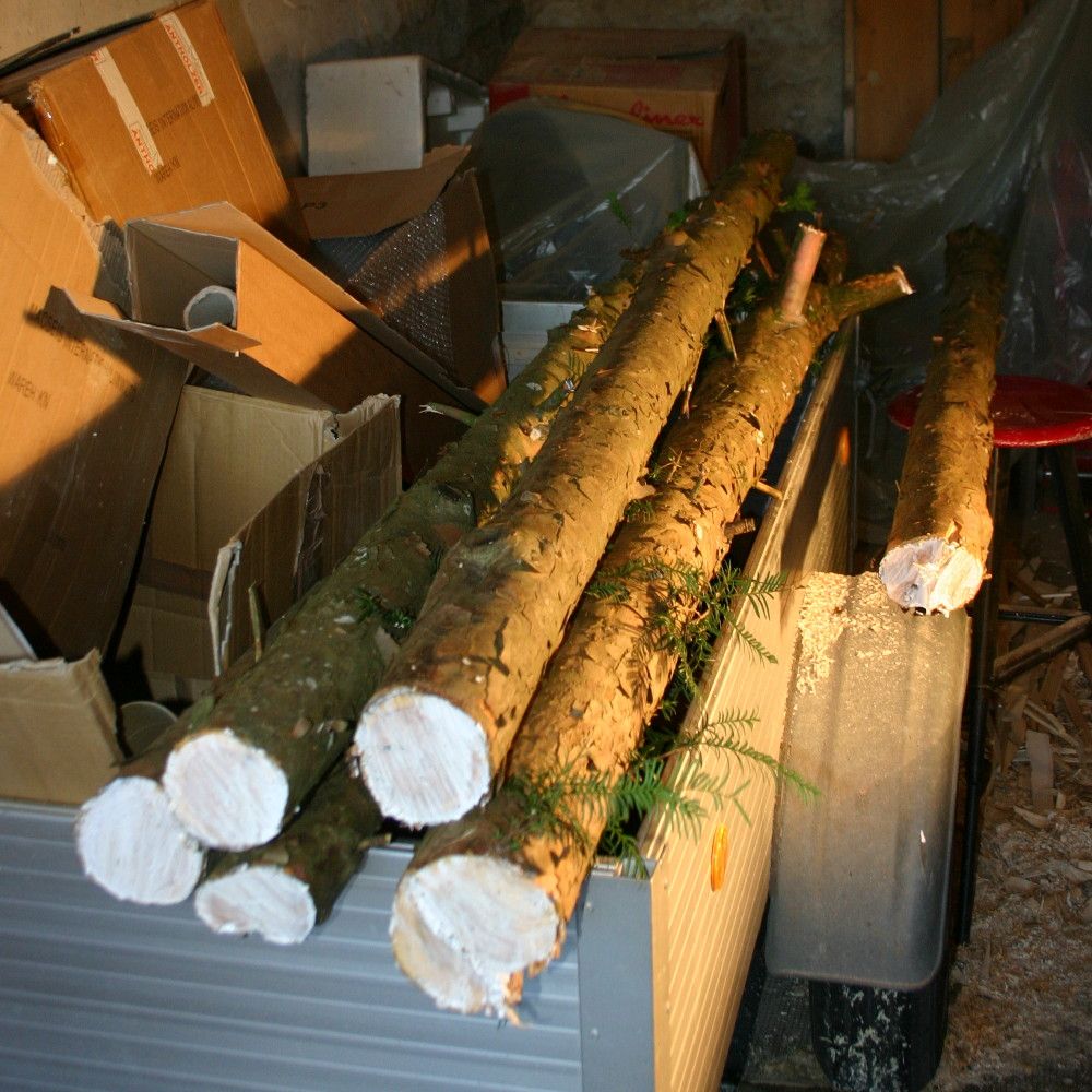 Dieser nette Mensch hat die letzten 10 Jahre alle Eiben, die hauptsächlich auf Friedhöfen angefallen sind, mit zu sich nach Hause genommen und schön luftig unter nem offen Schuppendach getrocknet. Dieses Lager durfte ich letzte Woche durchforsten.