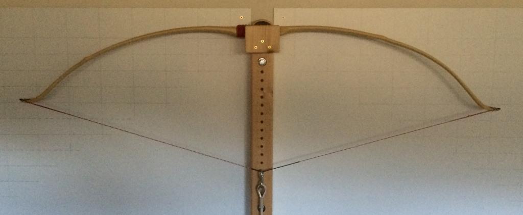 Der Bogen wurde, nachdem ich nur dran gebaut habe, wenn ich arbeitsmäßig auswärts unterwegs war, ausschließlich über die Schulter getillert. Dabei hab ich leider schon früh eine Schachstelle rein gekriegt, die sich leider nicht mehr ganz korrigieren ließ. Den Tillerbaum hat der Bogen nur für die Auszugsbilder gesehen.