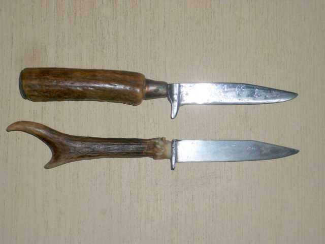Ich hab im 3-2-1 mal einen Jagdnicker, einen total verrosteten Bodenfund, ersteigert, so soll das Messerchen mal aussehen. Die grobe Form ist soweit da, aber ich denke mal, alle "Katschen" bekomme ich nicht mehr rauspoliert.