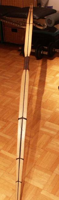 ich hab mich heute mit dem zweiten stave befaßt... ich habe einen engeren Biegeradius gewählt, was den Originalen näher kommt... prompt hat sich, bedingt durch den Drehwuchs, ein Span abgehoben... ich werde kein Epoxyd verwenden... an diesem Bogen wird also die Knochenverstärkung nicht nur Optik sein...