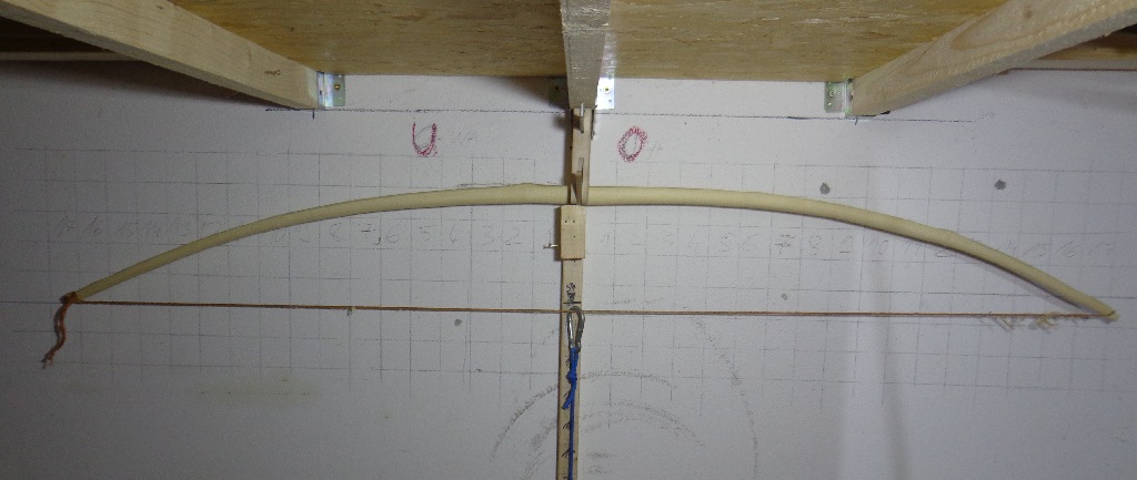 Aktuell hat er bei fast fertigem Tiller 70# bei 28" echtem Auszug (knapp 30" AMO) werde also bei um die 65# landen denke ich mal.