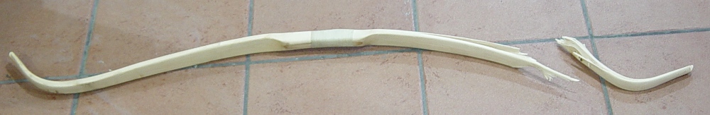 Vielleicht schaffe ich es aber noch die andere Hälfte des Staves zu einem Bogen zu verwandeln, dann aber mit kürzeren Recurves und dafür längerer Biegezone.