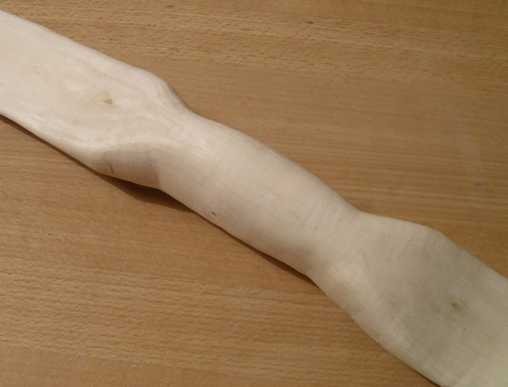 ) den üblen Knick der Anfänger (dort wo der Pfeil ist) an den ich wohl den ganzen Bogen anpassen muss. Allerdings erscheint mir die Sache etwas komplizierter: Der rechte WA ist recht "dellig" vor allem da wo es im Bild nach wenig Holz zwischen Restbast und Bauch aussieht (Wellenlinie und X ). Jetz ist es so dass gerade an den Stellen mit diesen Dellen es so aussieht al ob der WA steifer ist. Aber dort ist dennoch schon deutlich weniger Holz und ich vermute diese Steifigkeit kommt mehr von dieser delligen Struktur die evtl. stabiler ist als das normale bauchige runde (kann das sein???). Jedenfalls hier mal das Tillerbild. Wie wäre zu verfahren?