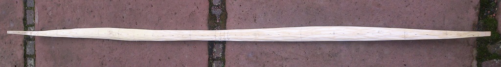 Naja, zum einen gefällt mir das und zum anderen will ich möglichst viel Holz nutzen. Es kann auch gut sein, dass ich in der Breite reduziere. Kommt drauf an, was die Waage sagt, wenn das Ding zum ersten Mal auf der Tillerwand ist. Ich will eigentlich auf keinen Fall unter 85# Zuggewicht fallen. Und da das mein erster Pfaffe ist, hab ich keine Ahnung was das Holz kann. Deswegen lieber erst mal zu breit und dick - reduzieren kann man immer.