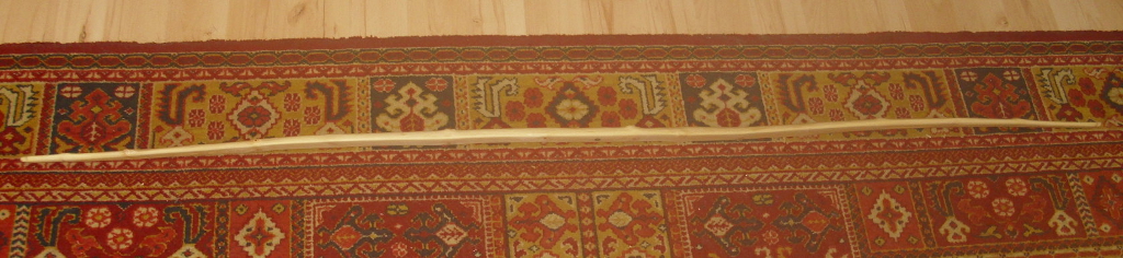 Die Sehnenlage.... schön, das er trotz der seitlichen Dämpfung so "gerade" geblieben ist Und ein paar Gemeinheiten... Insgesamt betrachtet ganz o.k; ein paar Pfeile jeglicher Gewichtsklassen fliegen lassen.. von 20-40g, macht er alles, egal wierum gehalten und zieht sich echt angenehm. Derzeit wiegt er noch 430g und hat seine 21kg auf auf 78cm, grob umgerechnet ca 46#/31". Mit etwas Feinarbeit und Finish sowie Einschiessen wird das noch ein bißchen kosten, aber der Traum von über 40# für diese dünne,windige, nixige, 2.Wahl-Ding scheint so langsam machbar...