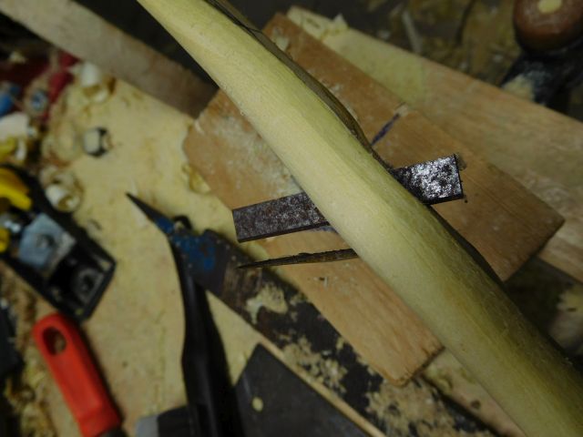 Tach, wenn Du mit UHU 300 kleben solltest, dann fände ich es passend, den Kleber auf max. Flexibilität einzustellen und dann mit ca. 100° C HLP einzuföhnen. Der hat dann die maximale Scherfestigkeit. Und ich würde im Griffbereich die Fasern beim Ast im Griff seitlich nicht durchtrennen, sondern an der Stelle, an der der Rücken am weitesten aufklappt, den Fasern optimal zu folgen versuchen (den Faserverlauf kann man ja schön sehen).