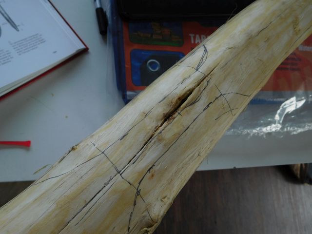 Außerdem kahm bei dem Riss auf dem Bogenrücken am bauch ein Ast/Verletzung zum Vorschein.