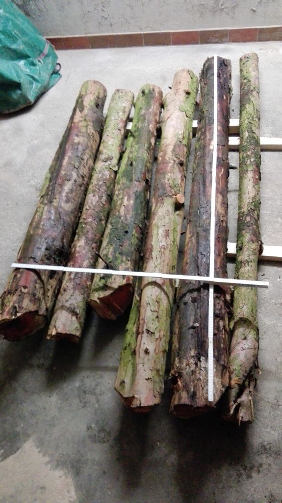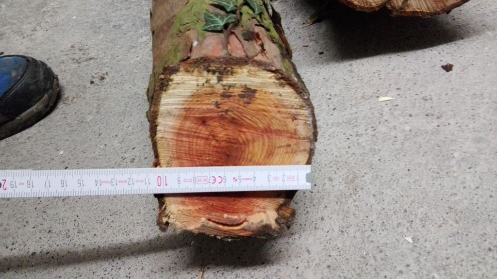 Heute habe ich mich mit Eibe eingedeckt. Die ist im Feb. gefällt worden und leider wurden die meisten stücke auf 1m zerkleinert ::) . Aber ich konnte 3 Stämme von 2m sichern und 3 zwischen 1,50 und 160cm(das werden Indianerbögen ;) )