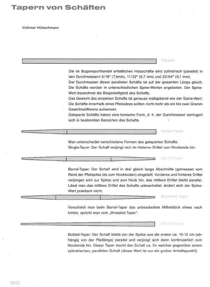 Pfeilschaft-Taper-Formen. Quellenangabe siehe unten...