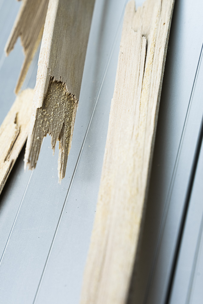 Als ich unter Tränen den aktuellen Splitterbruch begutachtete viel mir auf, dass die Schichten zwischen den Jahresringen (die vielleicht 1 mm haben) total bröselig sind, ähnlich wie Gries.