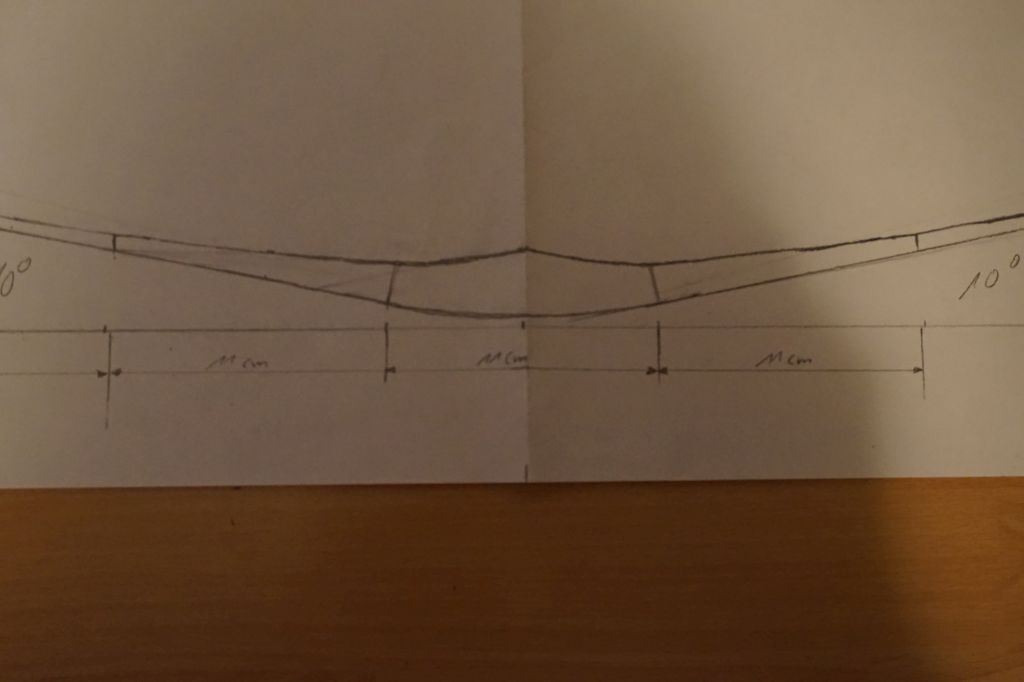 Ich habe mal einen Plan gezeichnet um die Radien und die Positionen der Spleißverbindungen festzulegen. Den Winkel im Griffbereich werde ich noch etwas erhöhen. Kann es sein , dass der Biegebereich der Wurfarme nur 25cm hat? Ist der Plan soweit stimmig oder muss ich noch was ändern? Die Stärke der Siyah ist noch zu viel und wird noch angepasst. Der Plan ist für meinen 60# Bogen 127NtN.