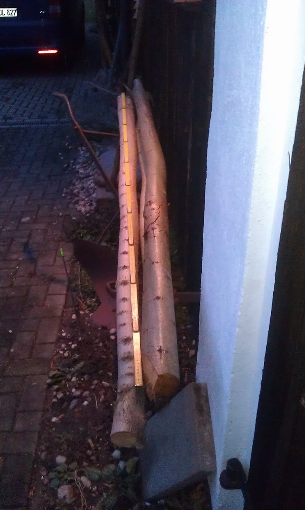 Wenn ich wieder in den heimatlichen Gefilden bin, dann lass ich euch mal ein Bild vom Stamm zukommen, welchen ich evtl. beabsichtige als Bogen zu verarzten.