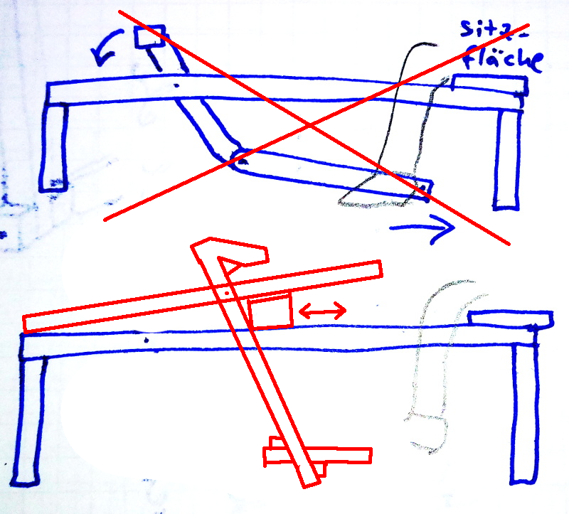 Hallo zusammen, danke für die Antworten. Also gezogen habe ich mit den Beinen schon ganz schön fest (Fitneßstudio-trainiert). Das Arbeiten in der Ebene vor einem ging bislang auch, daher hatte ich noch keine Erhöhung eingebaut. Beinen und Bandscheiben ging es gut, aber ich konnte es ja auch noch nicht lange testen. Wollte ja eigentlich nur auf Drücken umbauen, und dann weiter mit Bogen bauen - soweit so gut - dann kamen neue praktische Erfahrungen, die fatz total bestätigen