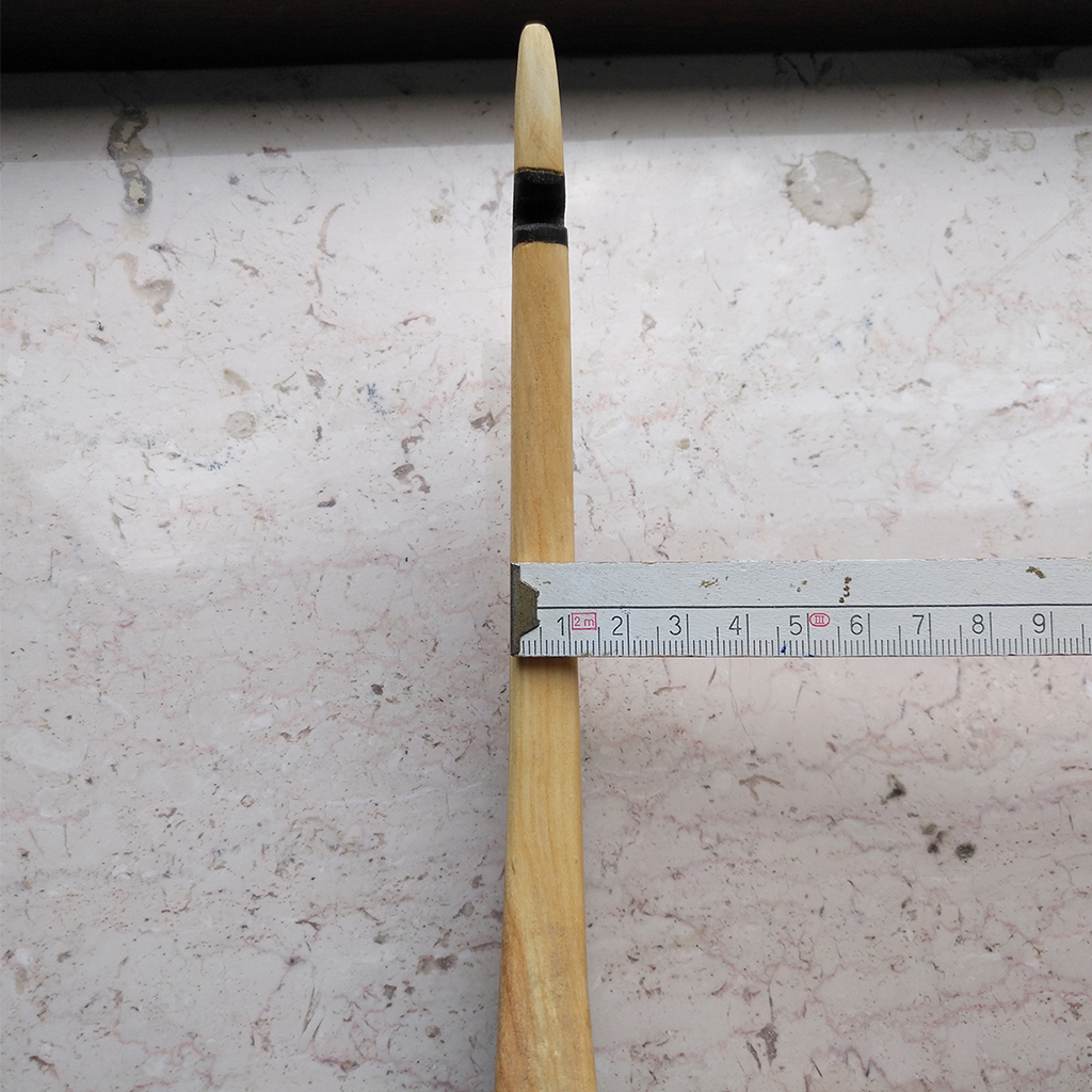 Was die Breite angeht: Historische Vorlagen zeigen meist eine gleichmäßige Breite am Siyahende, also im Querschnitt ein Rechteck. Macht man den Rücken breiter (Querschnitt Trapez), also dort, wo die Kerbe ist, dann hat man mehr Material in der Kerben-Umgebung (also mehr Stabilität) und weniger Reibung an den Siyahflanken, dafür aber mehr punktuelle Belastung der Sehne.