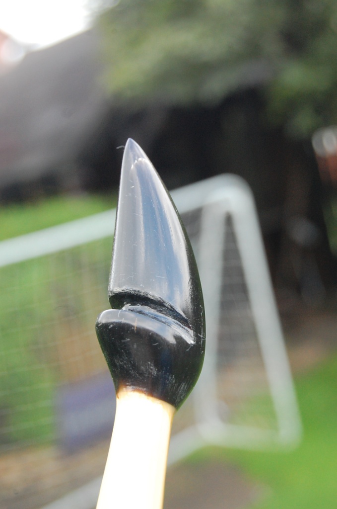 Naja, war schlecht gelagert, musste deshalb noch um gut 25 cm gekürzt werden und stand seit dem in meiner Kammer in der Ecke. Habs immer mal wieder zur Hand genommen und dann wieder gefrustet weggestellt. Da ich nun aber ehe Hornnocken herstellen üben wollte hab ich das Stück jetzt einfach genommen und angefangen was draus zu basteln.
